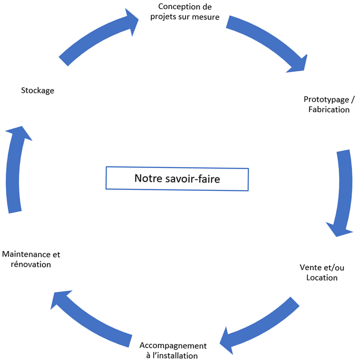 Notre accompagnement est global : du prototypage à la fabrication en passant pas la maintenance, pour vous proposer un accompagnement sur mesure sans surcout.